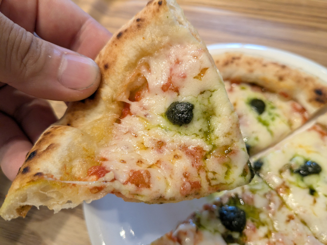 チーズとバジルソースをトッピングした「マルゲリータピッツァ」。