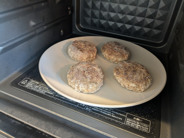 電子レンジで加熱後、オーブントースターで仕上げ焼きをします。