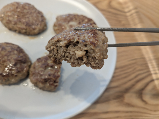 加熱後、ハンバーグの表面からすでに肉汁があふれ出しています。