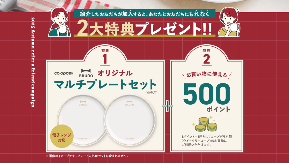 特典①としてコープデリとBRUNOがタイアップしたオリジナルマルチプレートをプレゼント。