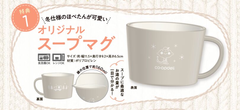 特典①としてコープデリのロゴが入ったオリジナルスープマグをプレゼント。