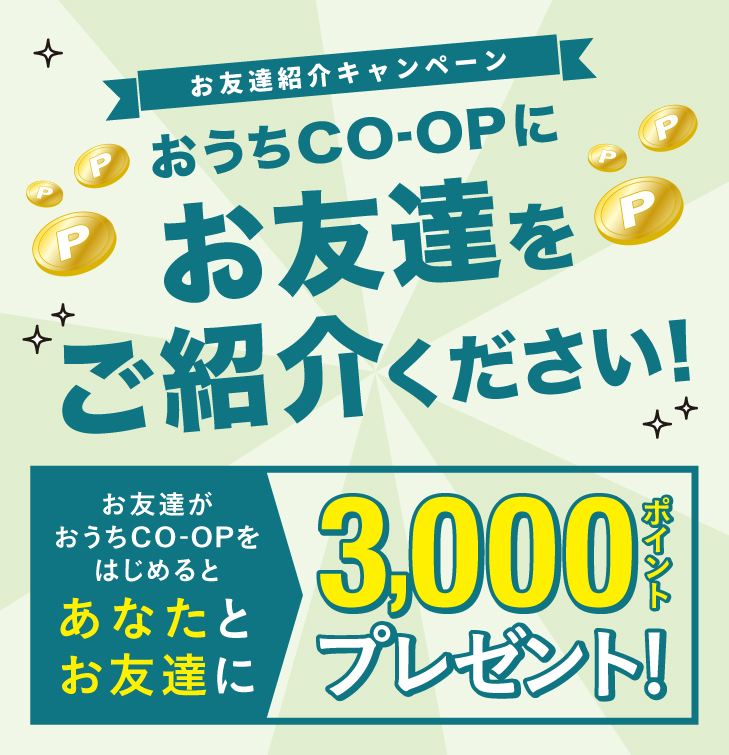 おうちコープを利用されているお友達がいるなら「お友達ご紹介キャンペーン」。